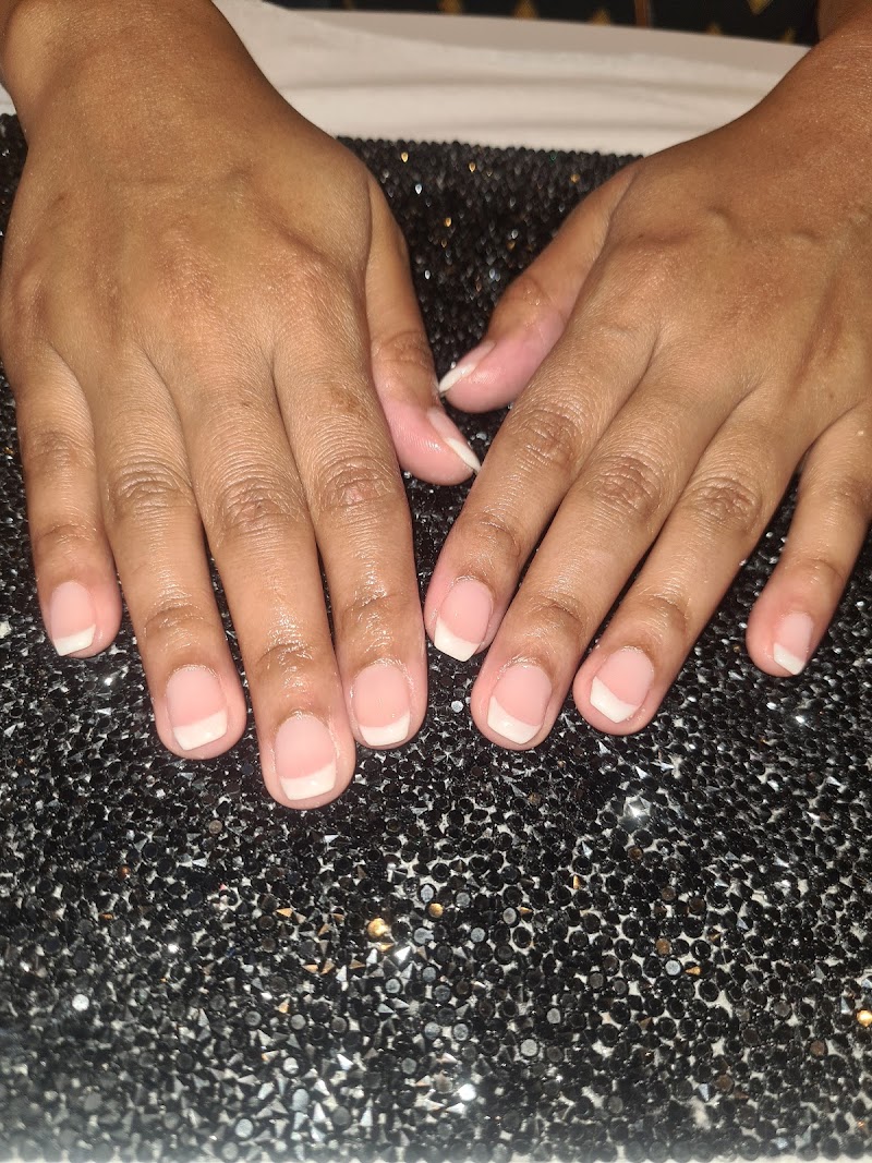 Dab Hair and Beauty Room is a nail salon in Peckham, London, rated 5 stars on Google. The salon is known for high-shine glossy lacquers and almond-shaped nails.