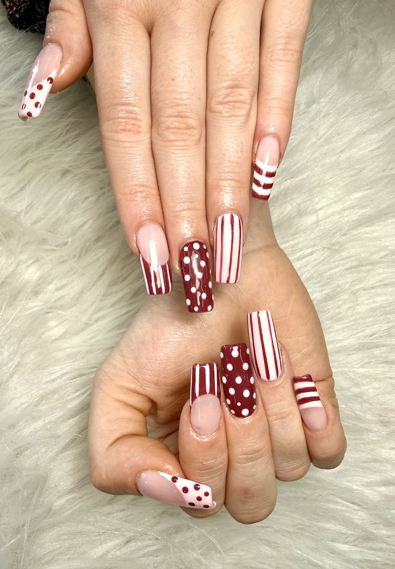 Maroon Nail and SPA is a nail salon in Central LA, Los Angeles, rated 4.6 stars on Google. The salon is known for high-shine glossy lacquers and intricate hand-painted nail art.