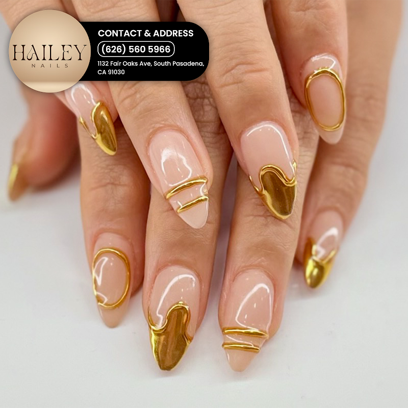 Hailey Nails is a nail salon in South Pasadena, Los Angeles, rated 4.6 stars on Google. The salon is known for glitter-gel effects and intricate hand-painted nail art.