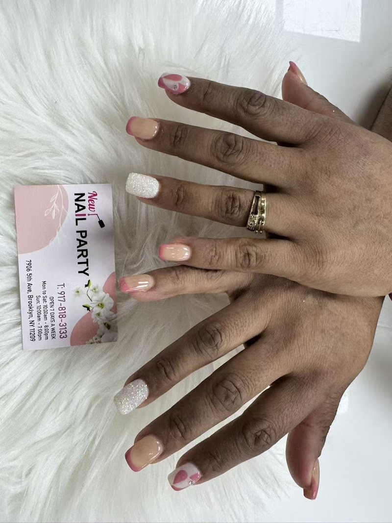 New Nail Party is a nail salon in Bay Ridge, New York, rated 4.6 stars on Google. The salon is known for glitter-gel effects and refined French tip manicures.