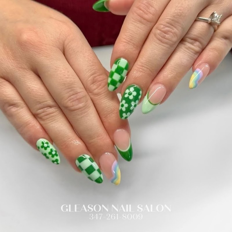 Gleason Nails Salon is a nail salon in The Bronx, New York, rated 4.4 stars on Google. The salon is known for high-shine glossy lacquers and intricate hand-painted nail art.