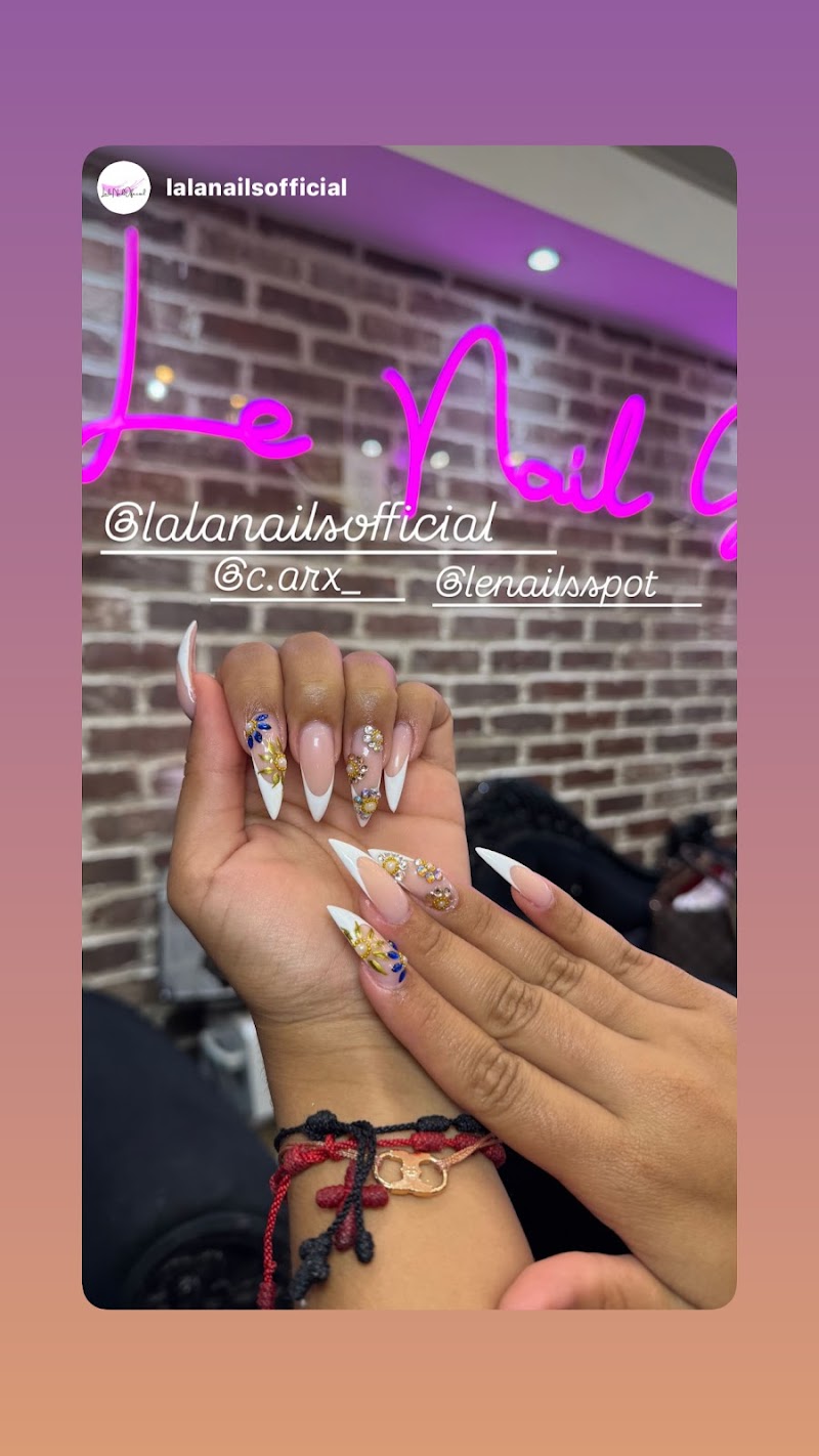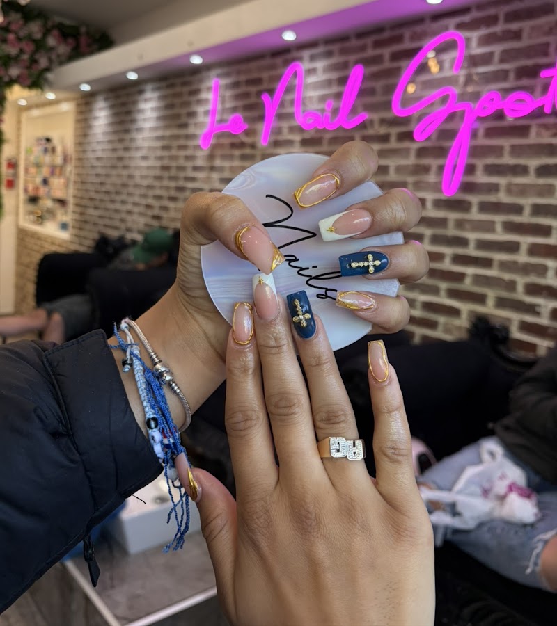 Le Nail Spot is a nail salon in The Bronx, New York, rated 4.6 stars on Google. The salon is known for high-shine glossy lacquers and intricate hand-painted nail art.