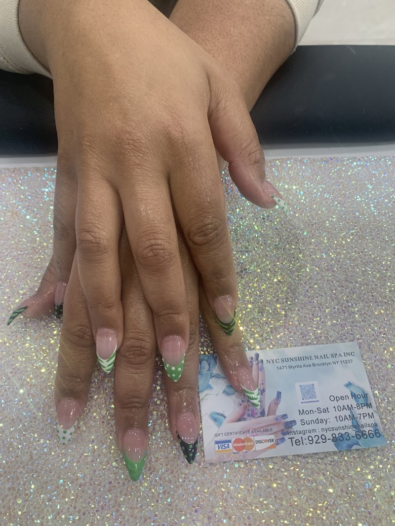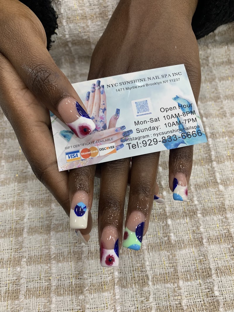 NYC Sunshine Nail SPA is a nail salon in Bushwick, New York, rated 4.3 stars on Google. The salon is known for glitter-gel effects and intricate hand-painted nail art.