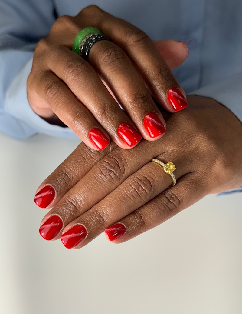 Darlings Beauty Lab is a nail salon in Chelsea, New York, rated 5 stars on Google. The salon is known for high-shine glossy lacquers and square-shaped nails.