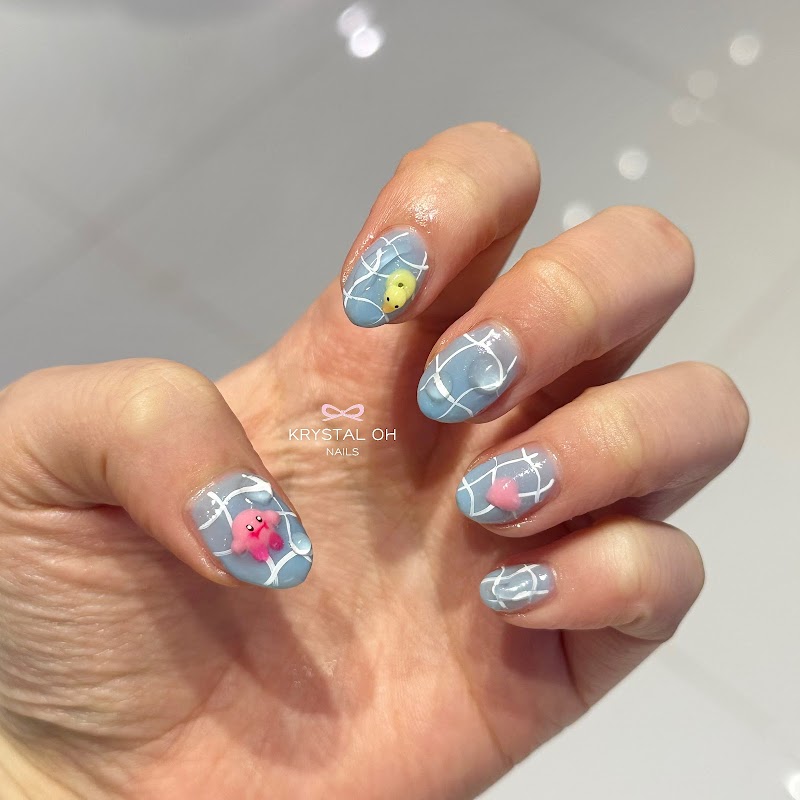 Krystal Oh Nails is a nail salon in Chelsea, New York, rated 4.2 stars on Google. The salon is known for high-shine glossy lacquers and intricate hand-painted nail art.