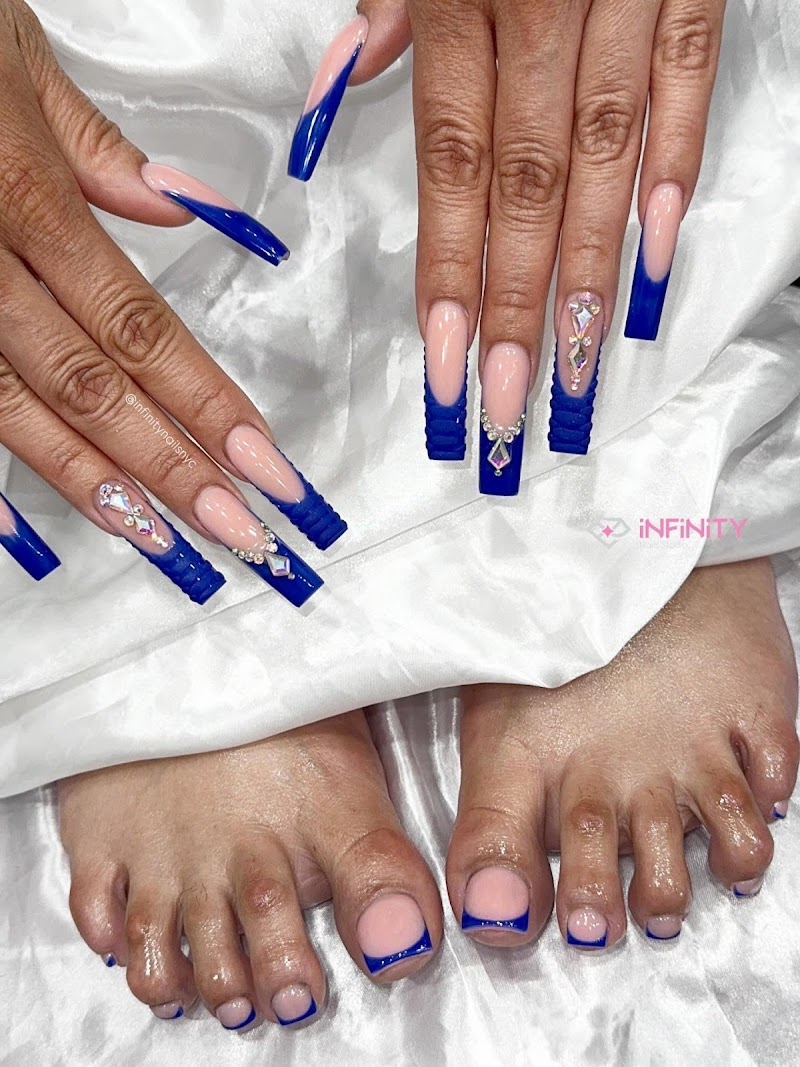 Infinity Nails Studio is a nail salon in East Harlem, New York, rated 4.6 stars on Google. The salon is known for high-shine glossy lacquers and intricate hand-painted nail art.