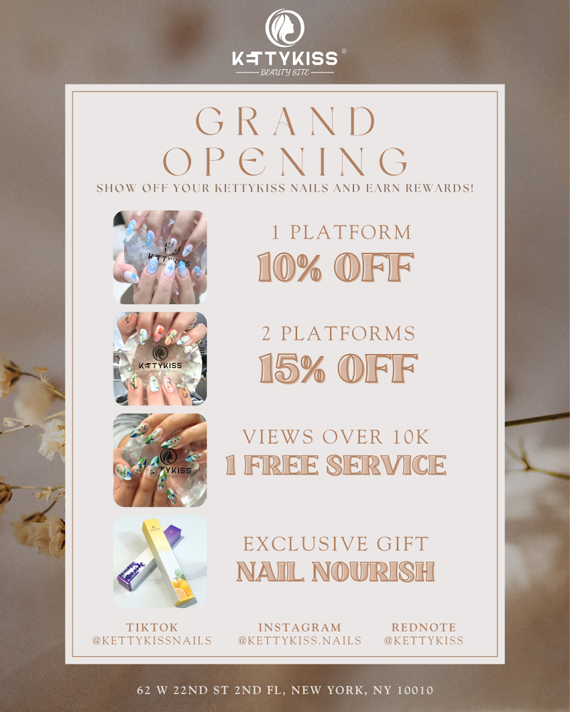 Kettykiss Nail Studio is a nail salon in Gramercy, New York, rated 4.5 stars on Google. The salon is known for high-shine glossy lacquers and intricate hand-painted nail art.