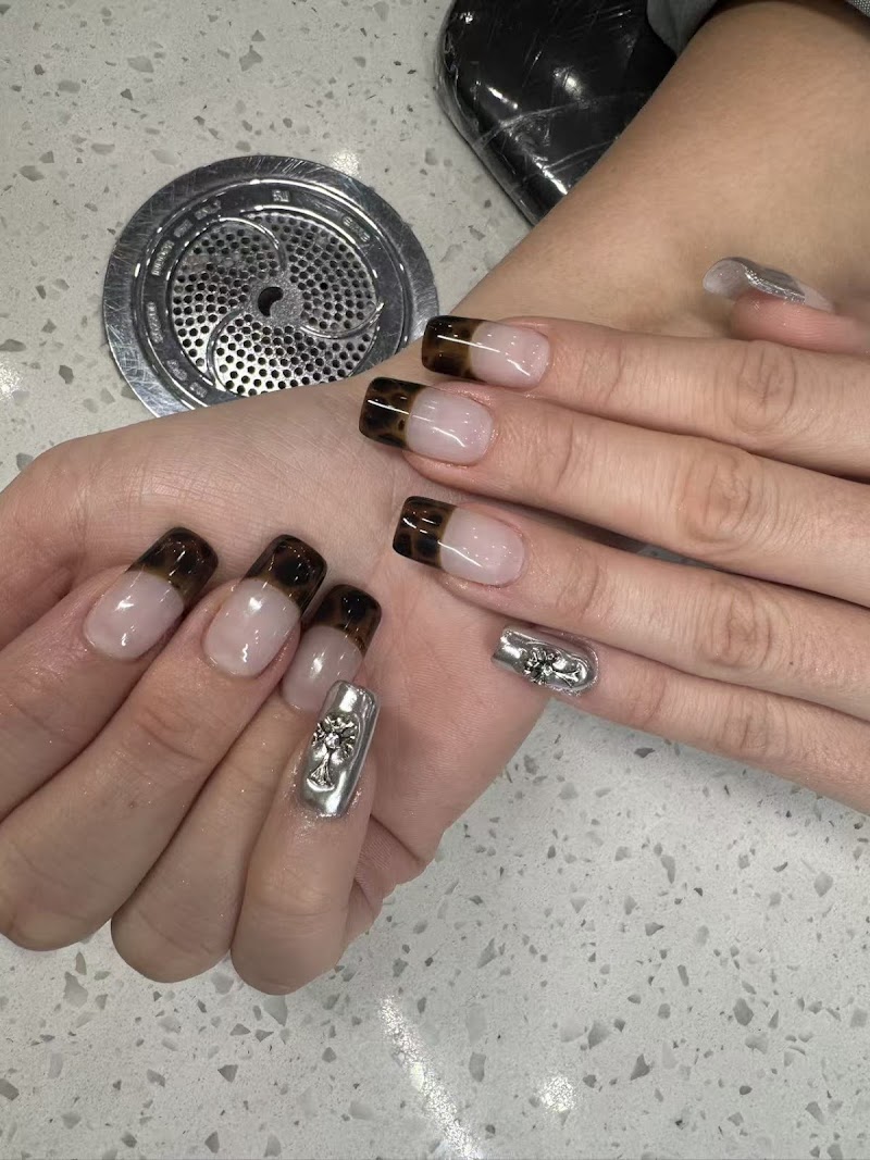 Stylish Ten Nail & SPA is a nail salon in Hell's Kitchen, New York, rated 4.1 stars on Google. The salon is known for high-shine glossy lacquers and almond-shaped nails.