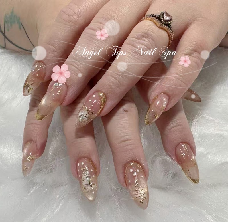 Angel Tips Nail SPA is a nail salon in Queens, New York, rated 3.4 stars on Google. The salon is known for high-shine glossy lacquers and gradient ombré designs.