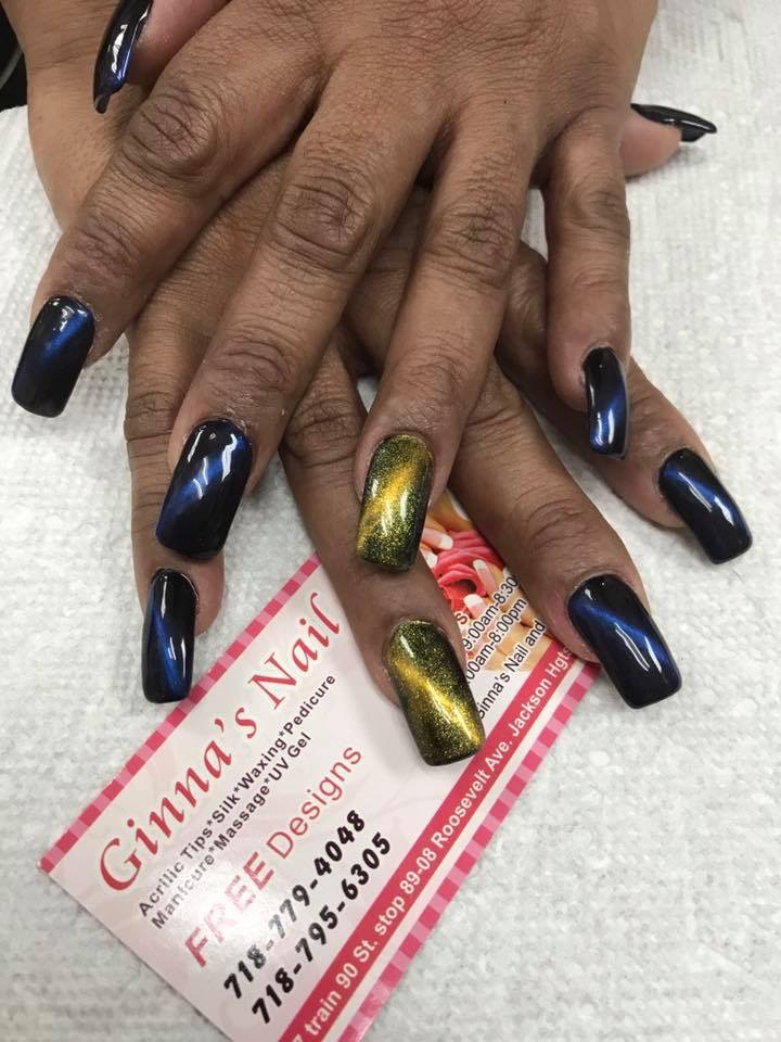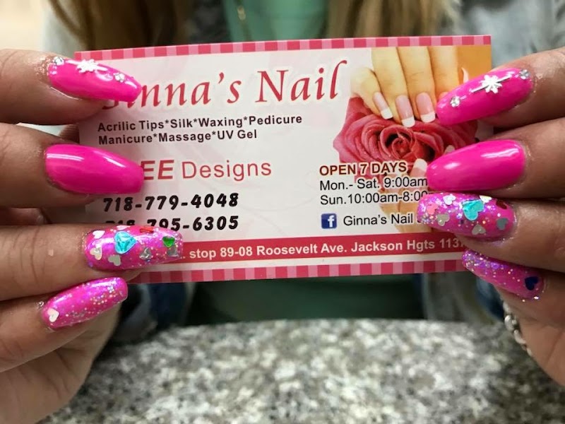 Ginna's Nail and SPA is a nail salon in Queens, New York, rated 4 stars on Google. The salon is known for high-shine glossy lacquers and intricate hand-painted nail art.