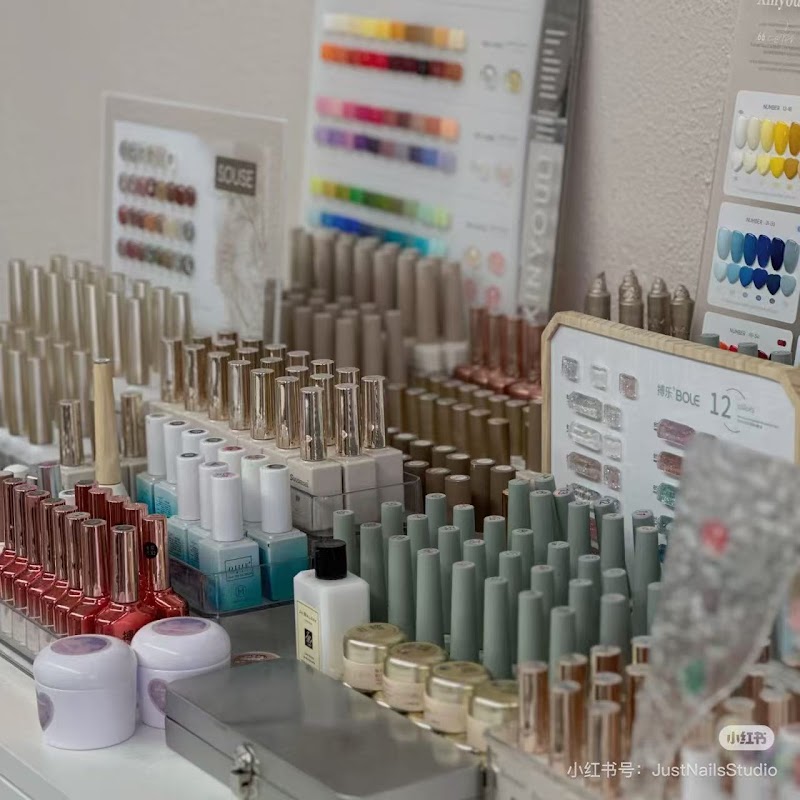 Just Nails Studio is a nail salon in Queens, New York, rated 5 stars on Google. The salon is known for high-shine glossy lacquers and intricate hand-painted nail art.