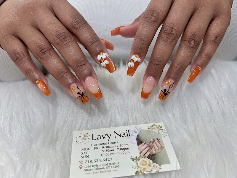 Lavy Nail is a nail salon in Staten Island, New York, rated 4.8 stars on Google. The salon is known for glitter-gel effects and almond-shaped nails.
