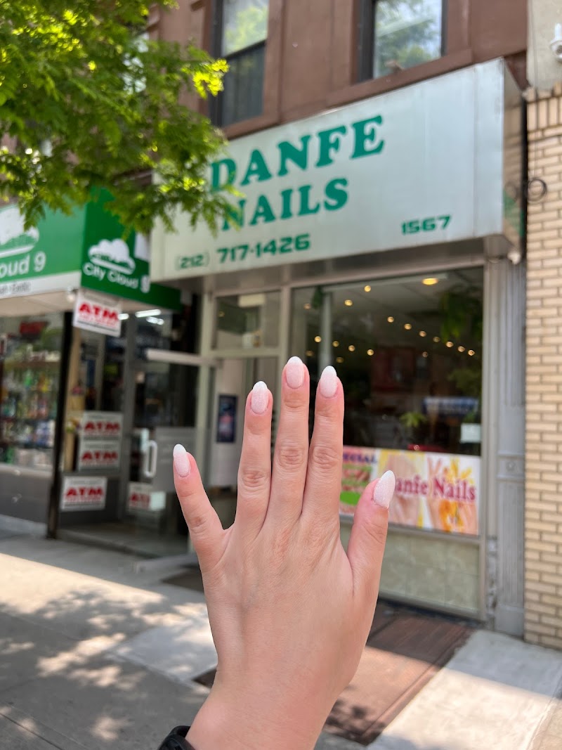 Danfe Nails is a nail salon in Upper East Side, New York, rated 4.7 stars on Google. The salon is known for high-shine glossy lacquers and oval nails.