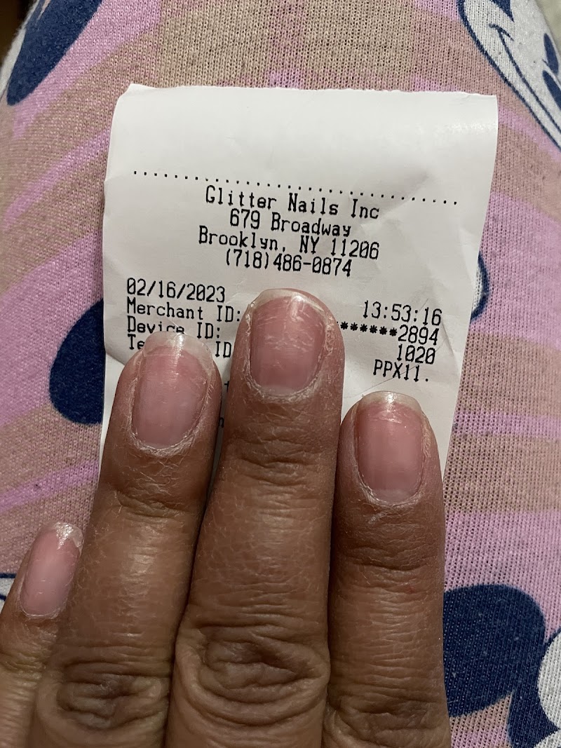Glitter Nails is a nail salon in Williamsburg, New York, rated 4.1 stars on Google. The salon is known for high-shine glossy lacquers and gradient ombré designs.